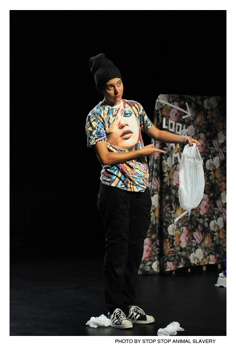 Mithilfe von alltäglichen Gegenständen, wie einem Plastik Sack, wird der unbewusste Umgang mit Waren und ein Beispiel dessen möglichen Folgen aufgezeigt. So übernehmen auch die Requisiten im Stück neben dem Sound eine ebenso zentrale Rolle ein und werden teil der Geschichte.